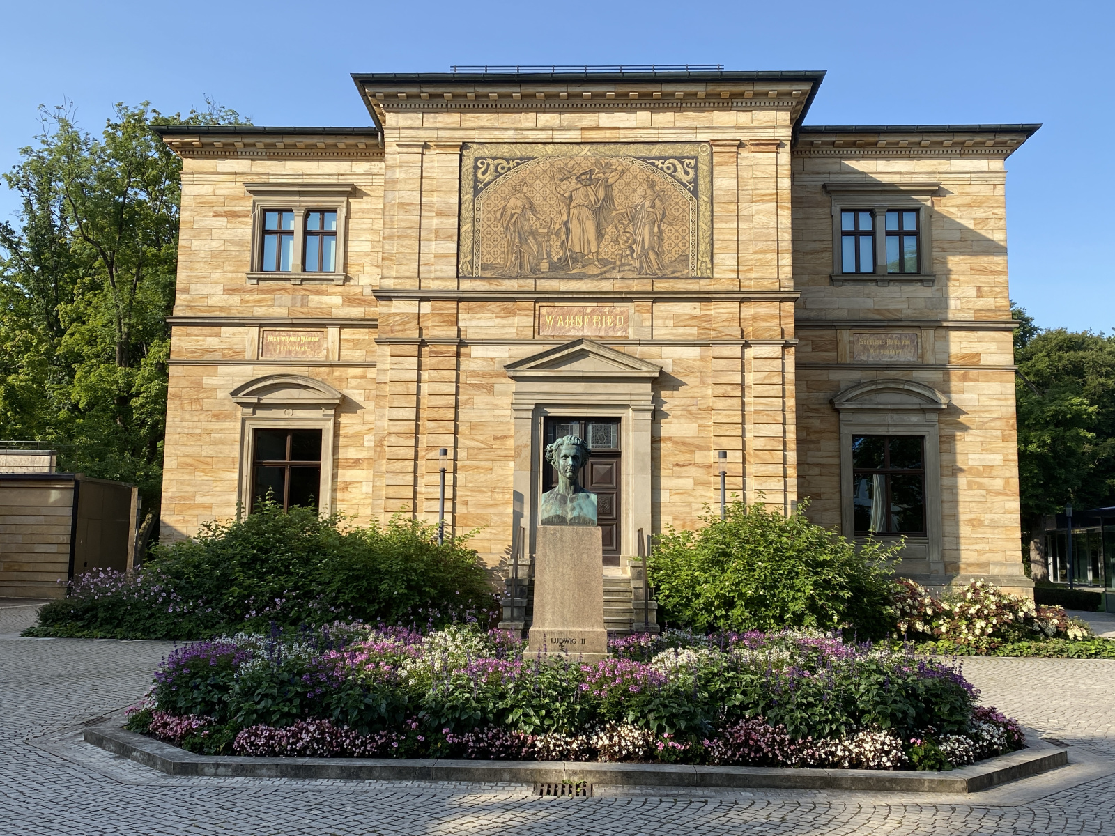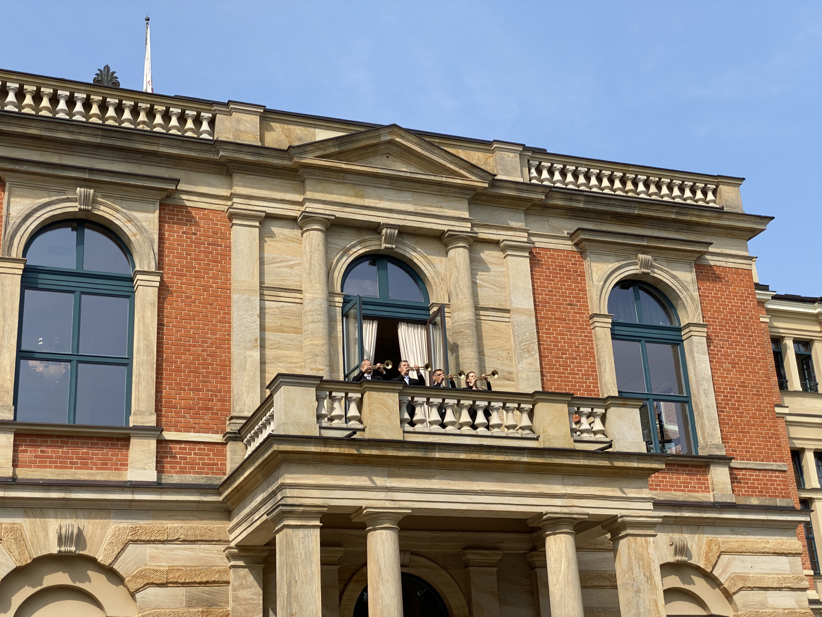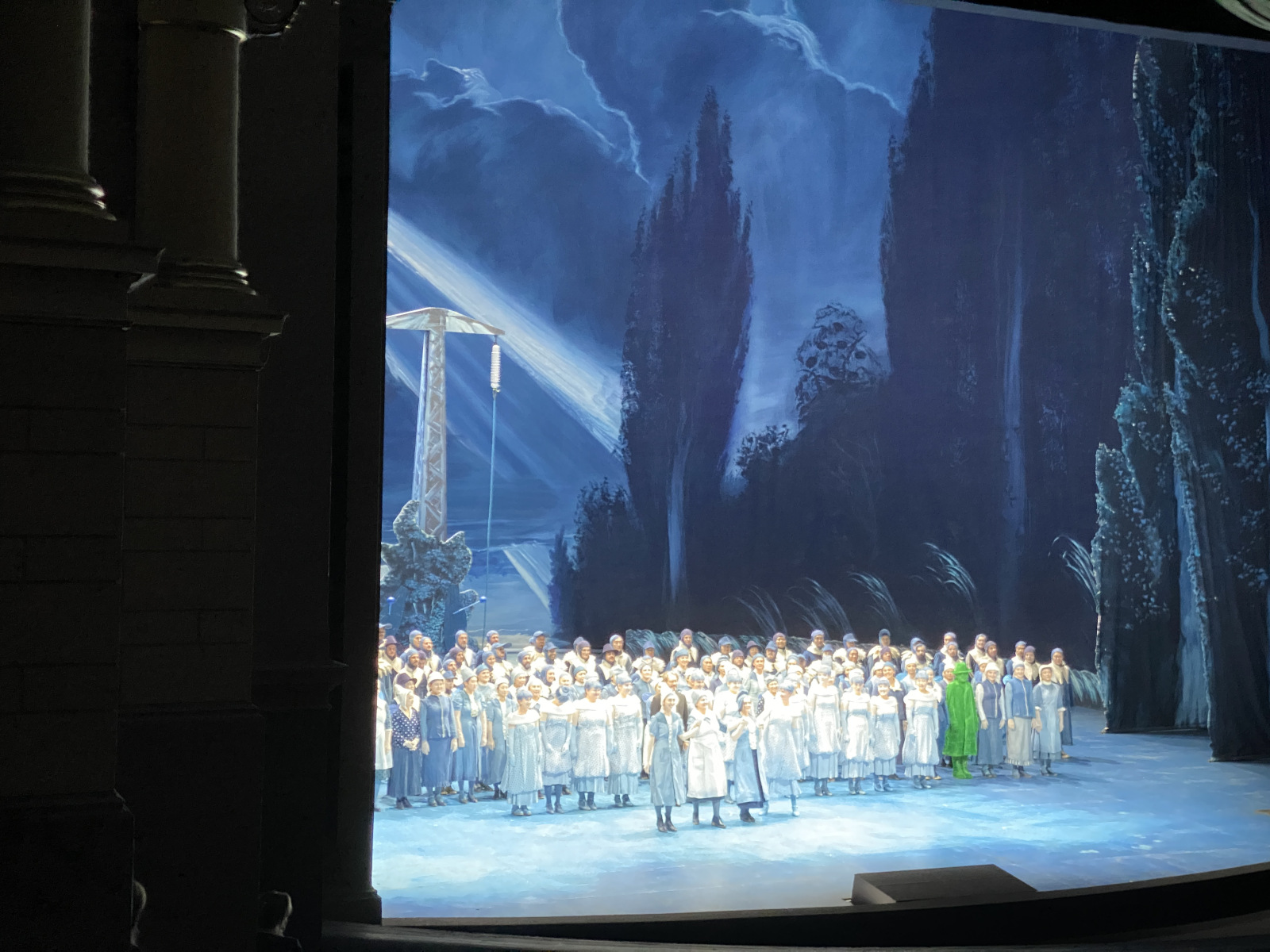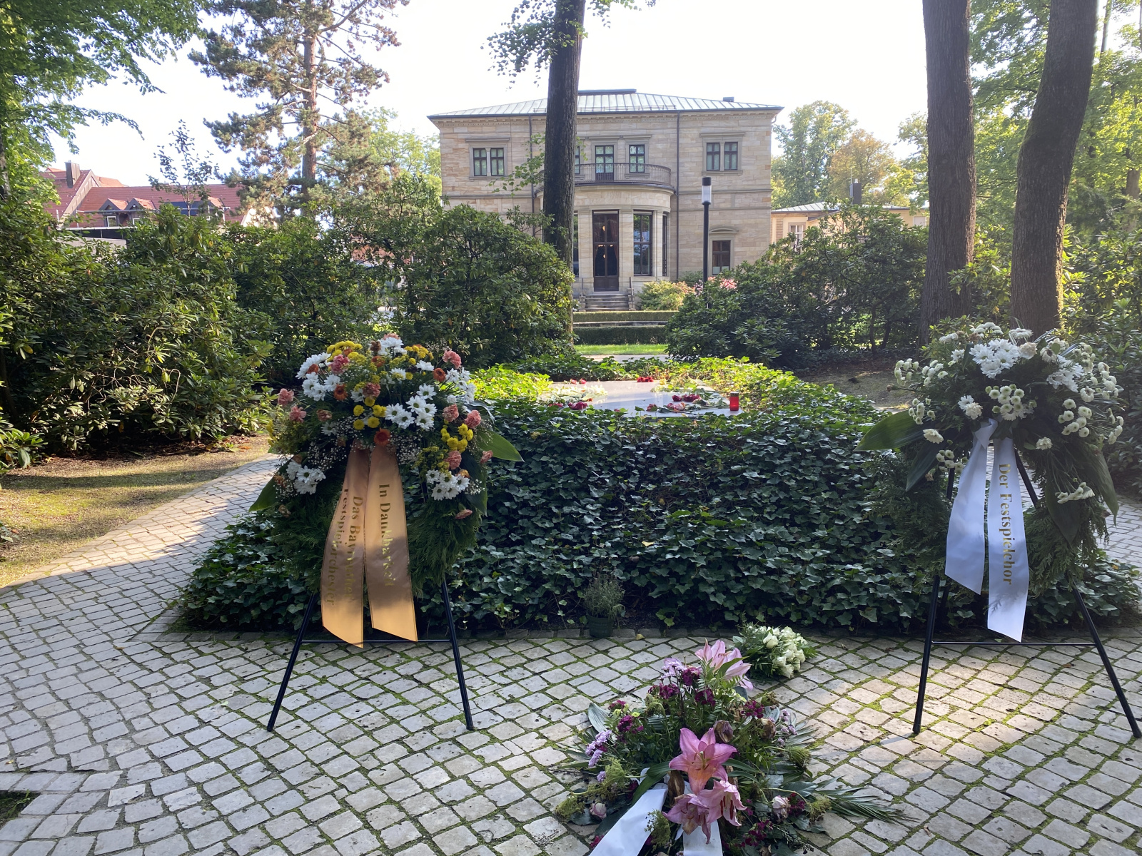 HANDOUT – Dieses von den Bayreuther Festspielen zur Verfügung gestellte Foto zeigt Irene Roberts (Venus, 2.v.l), Manni Laudenbach (Oskar, 3.v.l), Le Gateau Chocolat (l), Klaus Florian Vogt (Tannhäuser, 3.v.r), Elisabeth Teige (Elisabeth, r), Günther Groissböck (Landgraf Hermann 2.v.r) und den Chor der Bayreuther Festspiele (im Hintergund) im 2. Aufzug der Oper «Tannhäuser» von Richard Wagner auf der Bühne. +++ dpa-Bildfunk +++